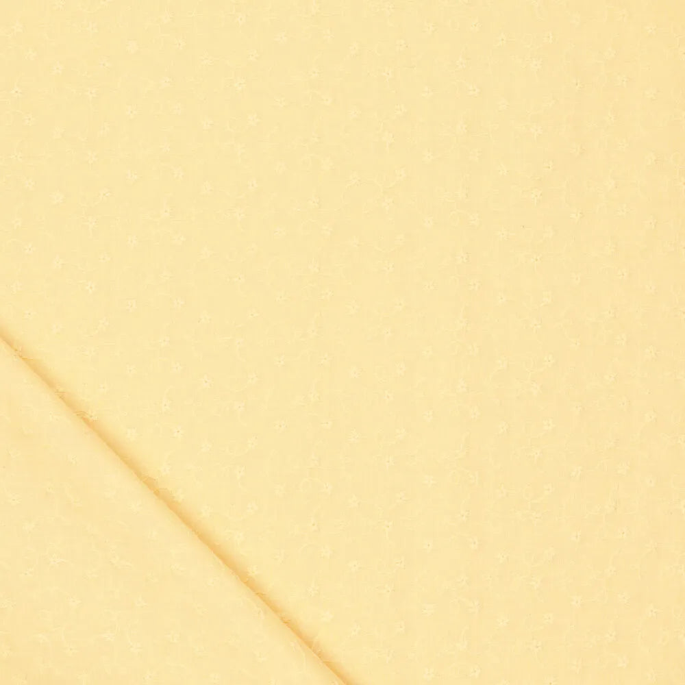Ontdek deze frisse gele katoenen geweven stof met een zachte en luchtige kwaliteit. Dankzij het lichte gewicht en de soepele structuur is deze stof ideaal voor kinderkleding die comfortabel en prettig draagbaar moet zijn. De uni‑kleur geeft de stof een tijdloze en veelzijdige uitstraling.