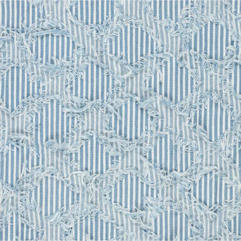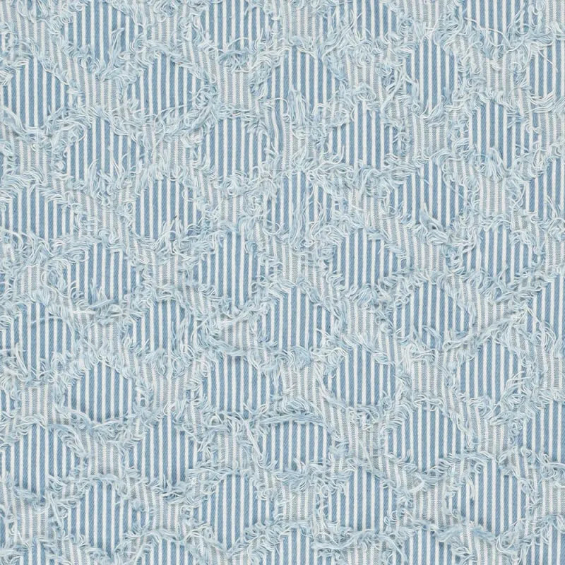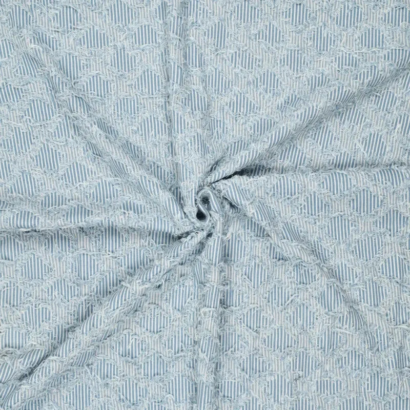 Ontdek deze unieke denim stof met een speels streepdessin en opvallende ruffle-structuur. De combinatie van klassieke denimstrepen met een driedimensionaal effect geeft de stof een moderne en creatieve uitstraling. Perfect voor wie nét even iets anders wil maken dan een standaard denim ontwerp.