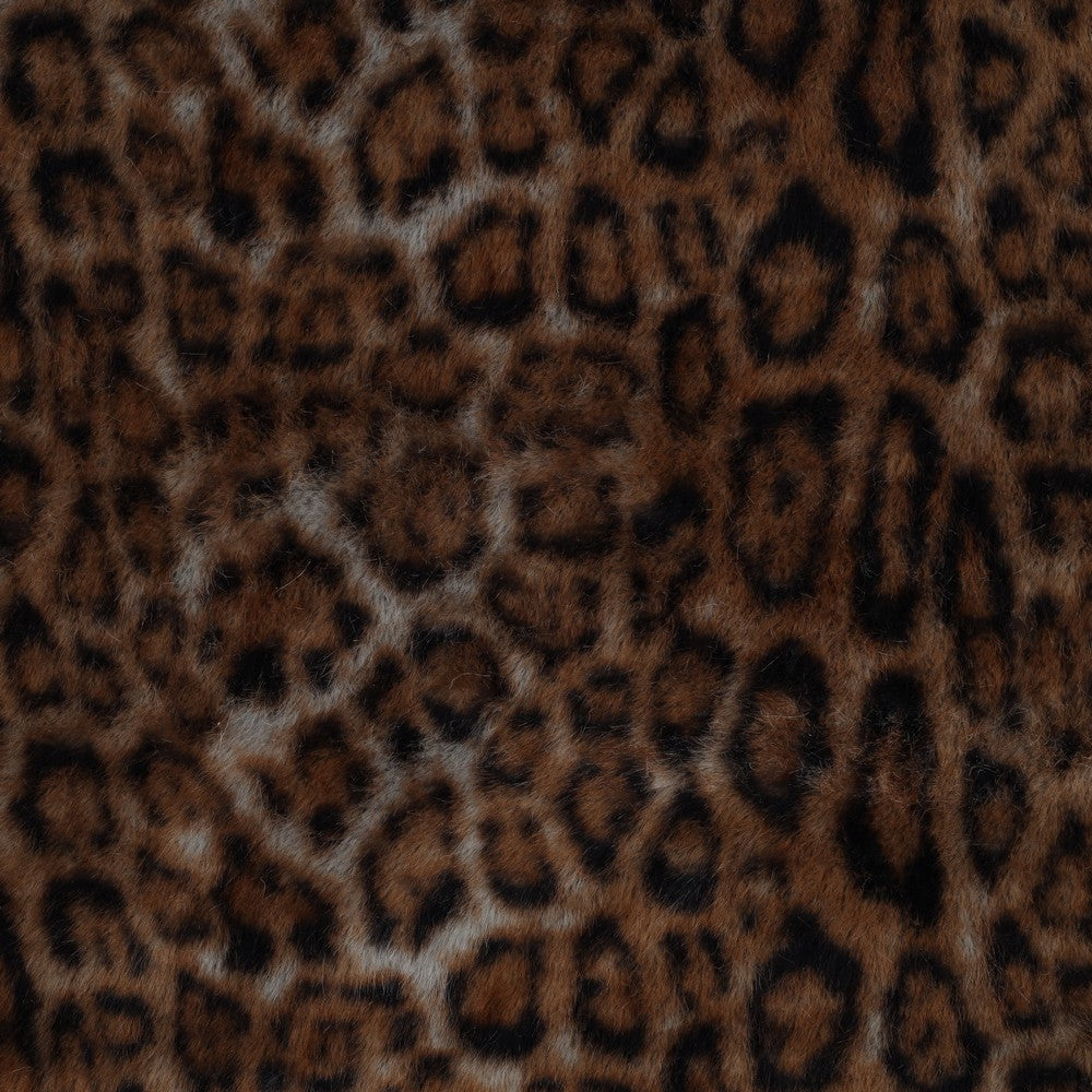Ontdek deze bruine faux fur stof met panterprint en een stijlvolle, trendy uitstraling. De stof voelt heerlijk zacht aan en heeft een luxe look. Dankzij het panterdessin is deze faux fur een echte eyecatcher voor modieuze en speelse ontwerpen.
