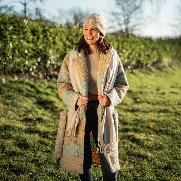 Ontdek deze blauwe bouclé-look stof met een bijzondere en stijlvolle uitstraling. De stof bestaat uit verschillende kleuren in banen, wat zorgt voor een uniek en modieus effect. Dankzij het zachte, brushed oppervlak met bouclé-structuur voelt de stof heerlijk zacht aan en oogt hij luxe en karaktervol.