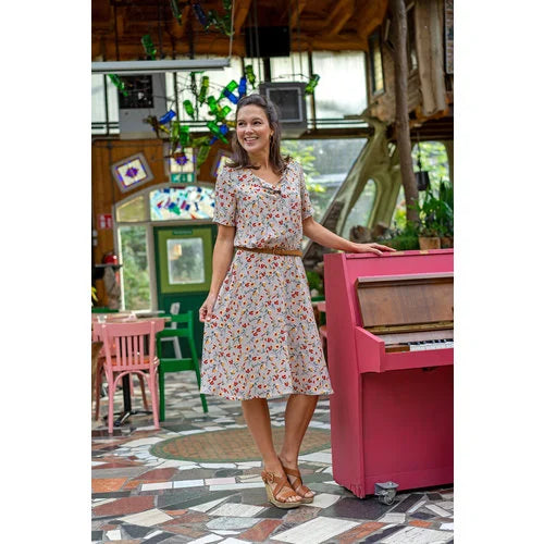 De jurk kan worden gemaakt in verschillende stoffen zoals katoen, viscose, linnen of andere soepele jurkstoffen. Hierdoor kun je eenvoudig variëren in stijl, print en seizoen.