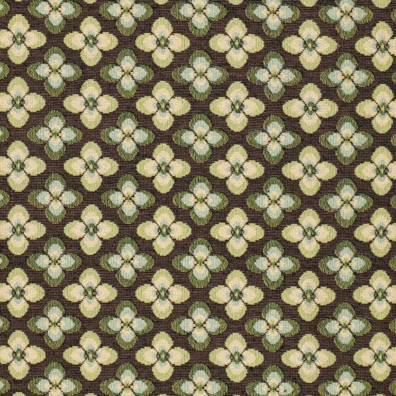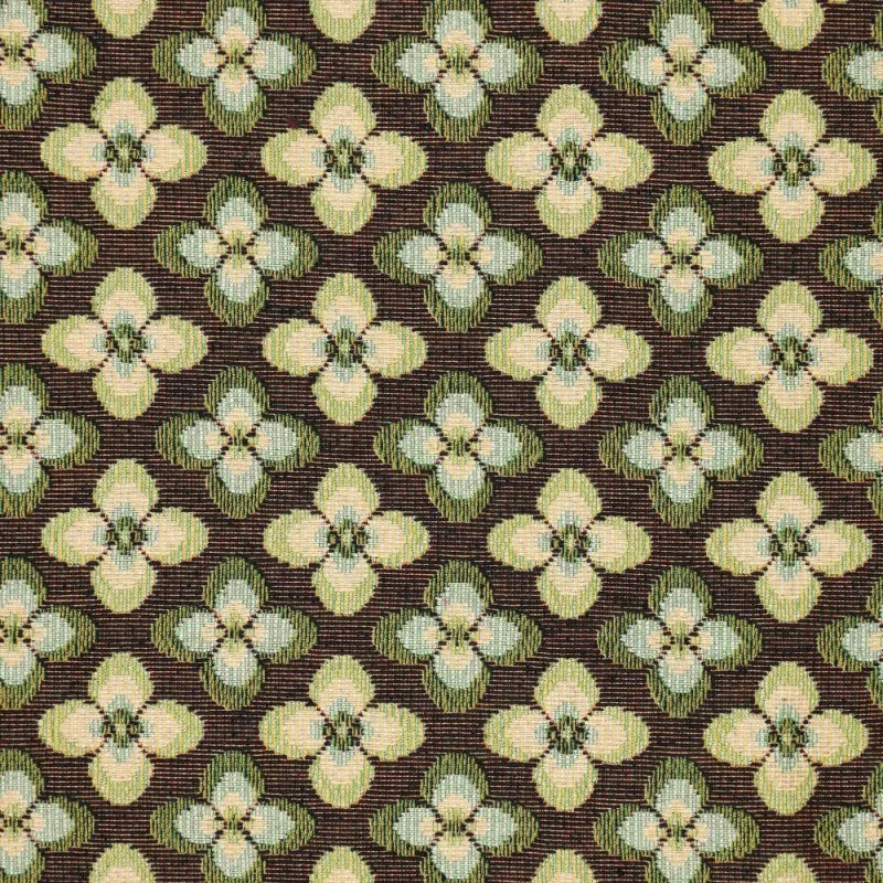Deze groene jacquard stof per meter heeft een uitgesproken geweven dessin met een vintage karakter. Doordat het motief niet gedrukt maar ingeweven is, ontstaat een rijke textuur en een luxe uitstraling die lang mooi blijft. De combinatie van polyester en andere vezels (O.F.) zorgt voor stevigheid, duurzaamheid en vormvastheid.