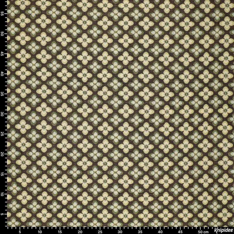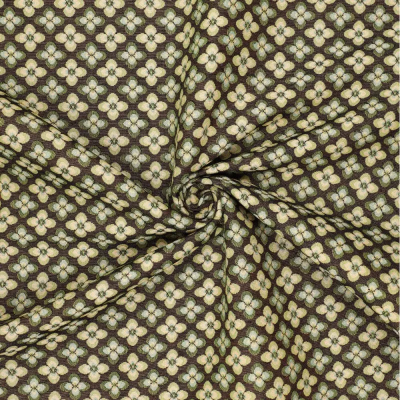 Ontdek deze groene jacquard stof met een karaktervol en decoratief motief en een stijlvolle vintage uitstraling. De geweven print geeft de stof diepte en luxe, terwijl de rijke groene tint zorgt voor een warme en chique look. Een veelzijdige stof die zowel in mode als interieur prachtig tot zijn recht komt.