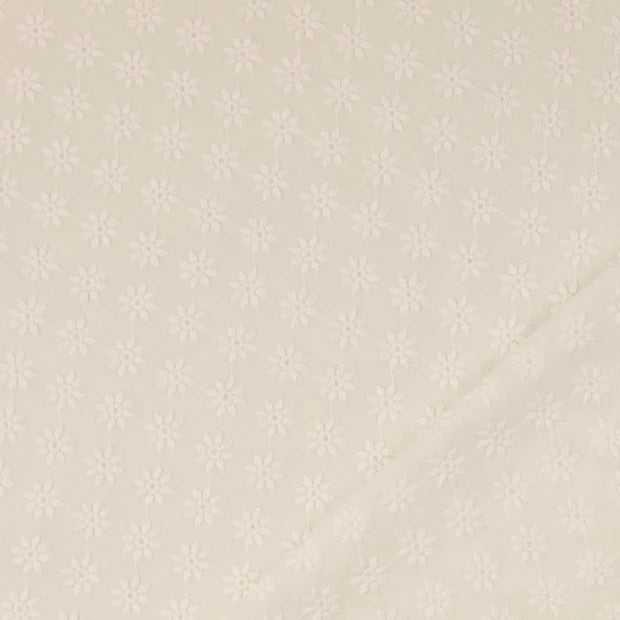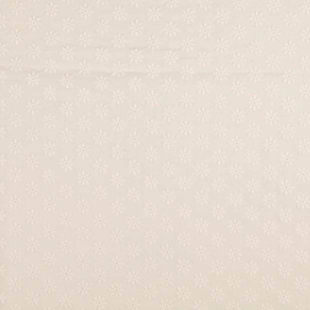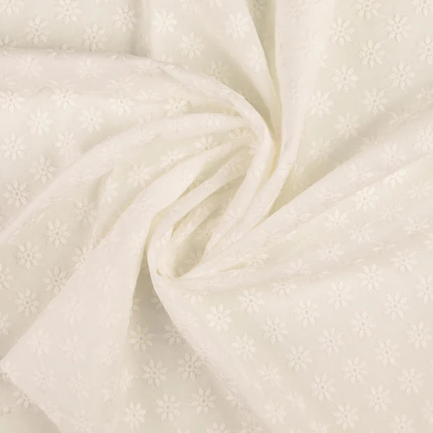 Ontdek deze prachtige witte katoen stof met een subtiel bloemenmotief. De stof heeft een frisse en tijdloze uitstraling en voelt dankzij de katoenen kwaliteit heerlijk zacht en comfortabel aan. Door het fijne dessin is deze stof perfect voor zowel stijlvolle kleding als decoratieve toepassingen.