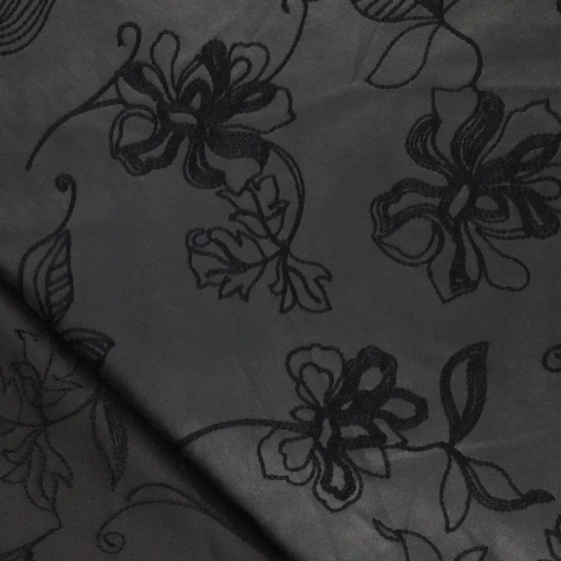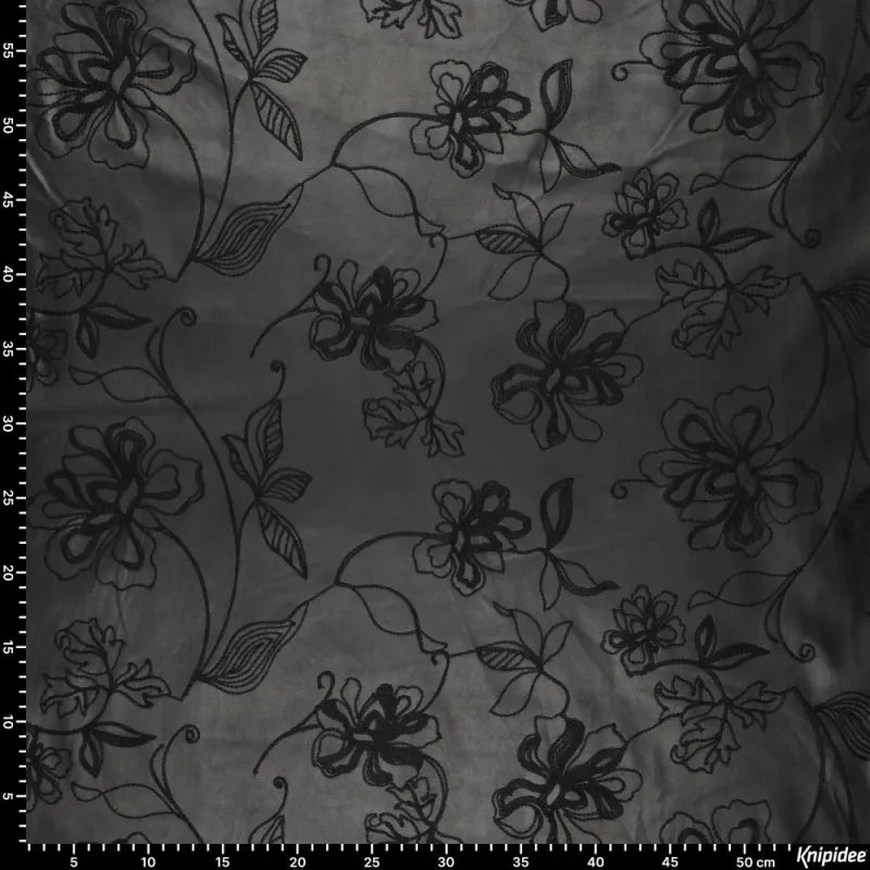 Ontdek deze zwarte kunstleer stof met een stijlvolle en trendy uitstraling. De stof is nauwelijks van echt leer te onderscheiden en heeft veel stretch, wat zorgt voor een comfortabel draaggevoel. Het subtiele bloemen- en structuurmotief geeft deze stof een verfijnde en modieuze look, ideaal voor broeken, rokken, blouses en jumpsuits.