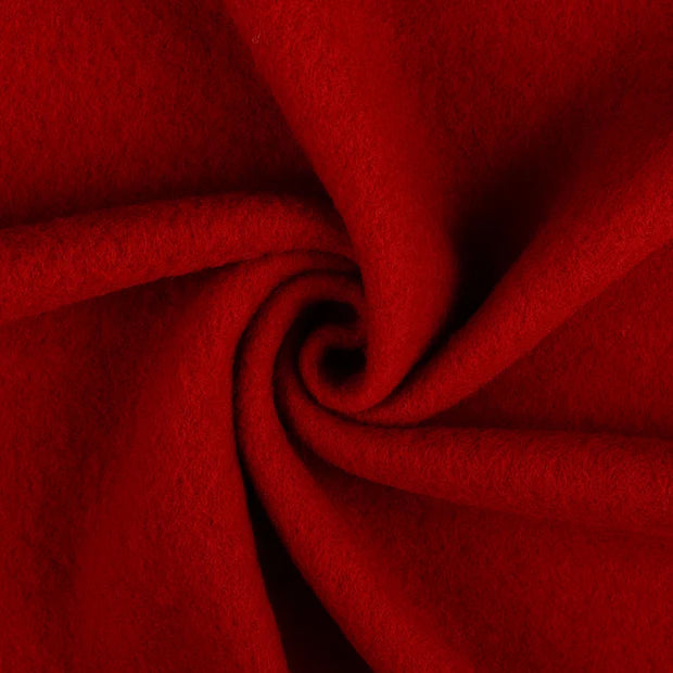 Deze rode wolstof per meter is een prachtige keuze voor wie op zoek is naar een natuurlijke, luxe kwaliteit. De stof voelt heerlijk zacht aan en heeft een mooie, soepele valling, waardoor hij comfortabel draagt en elegant oogt. Met een gewicht van 330 gr/m² biedt deze wolstof een stevige, middenzware kwaliteit die perfect in vorm blijft, maar toch soepel genoeg is voor diverse toepassingen.